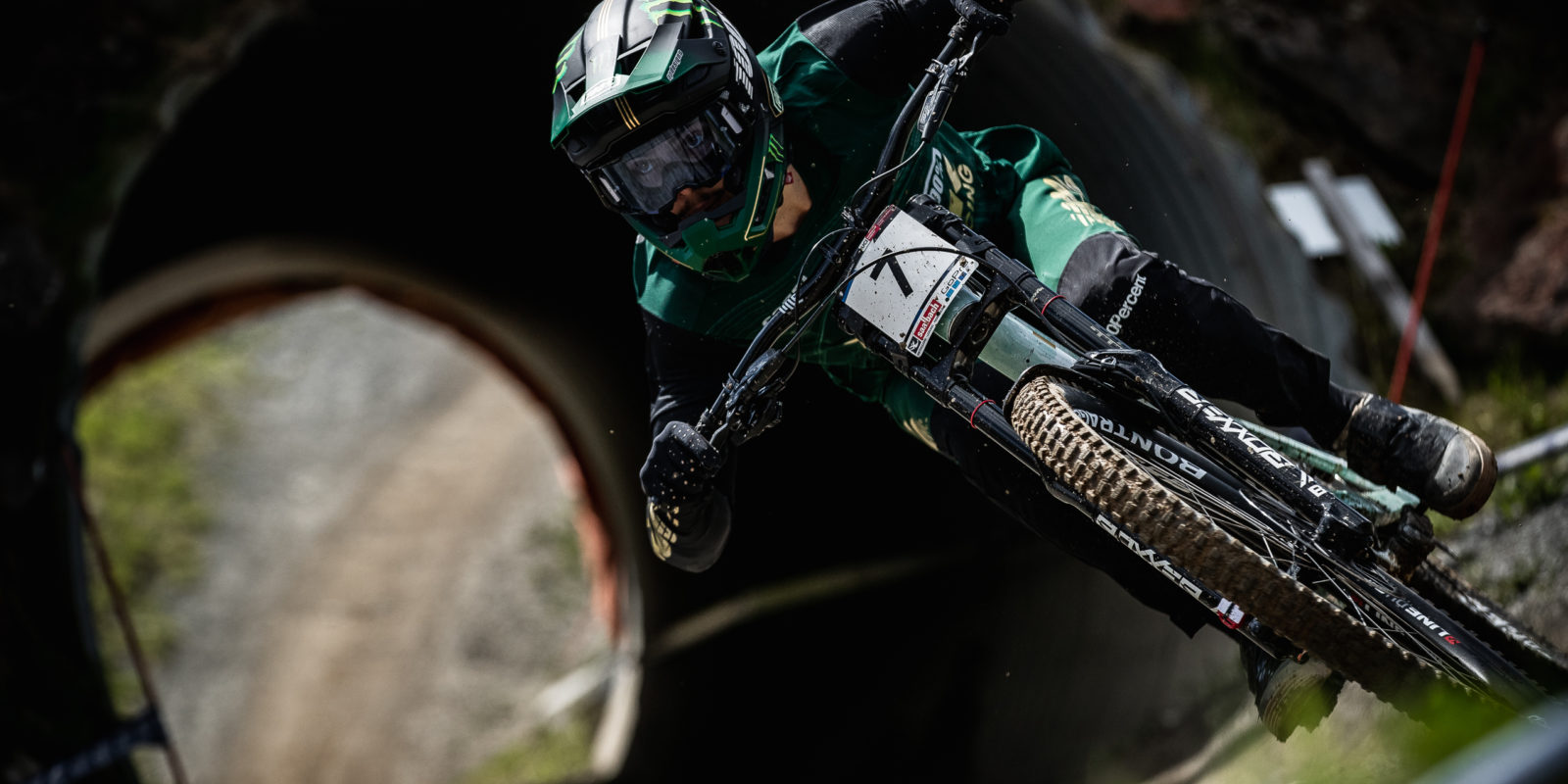 The downhill course in Leogang kept riders on their toes all week. It featured big sends, gnarly roots and narrow tree gaps, and thanks to rain leading up to the weekend, the track conditions were in constant flux.