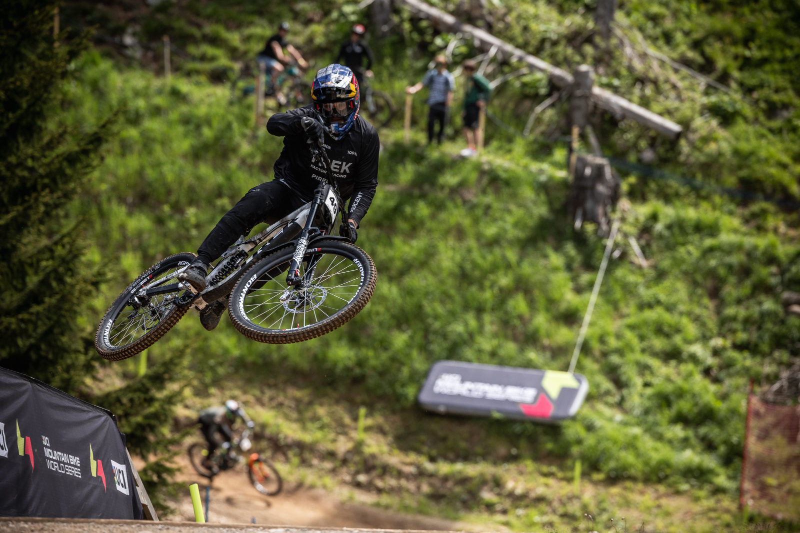 Bodhi Kuhn may be racing for Trek Factory Racing for the first time, but he was a regular under the team tent last year as a 17-year-old. Now a wise 18-year-old officially wearing the TFR kit, he wasn’t at all intimidated by the World Cup environment. Kuhn was the second fastest men’s junior racer of the weekend, finishing roughly 1.6 seconds behind Jordan Hauser.