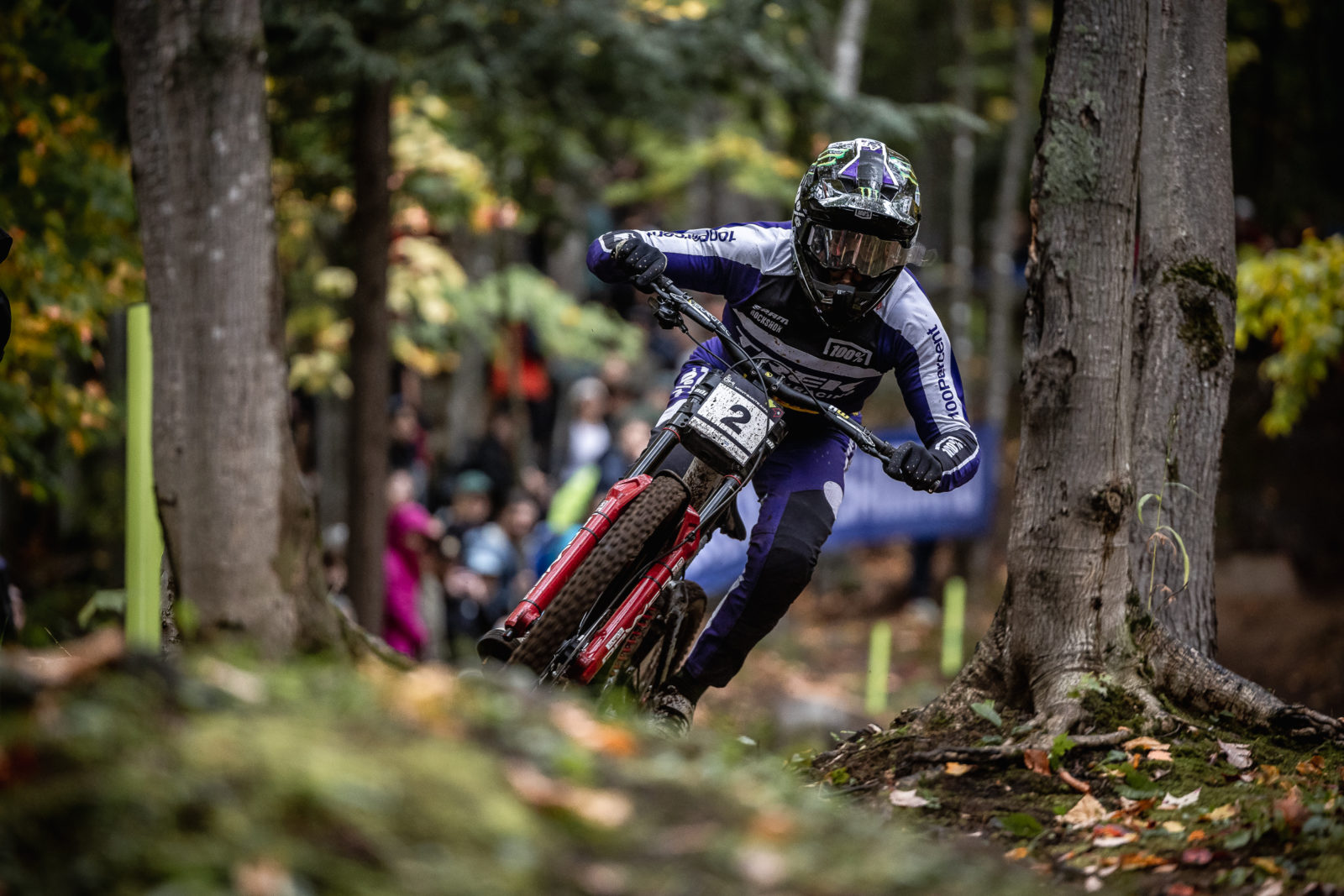 Bodhi Kuhn had one of the most anticipated race runs of Mont-Sainte-Anne as one of a handful of Canadian contenders. Unfortunately, he couldn’t race because of a rough crash in practice, but despite being forced to sit, he still managed to finish third overall on the men’s junior DH standings.