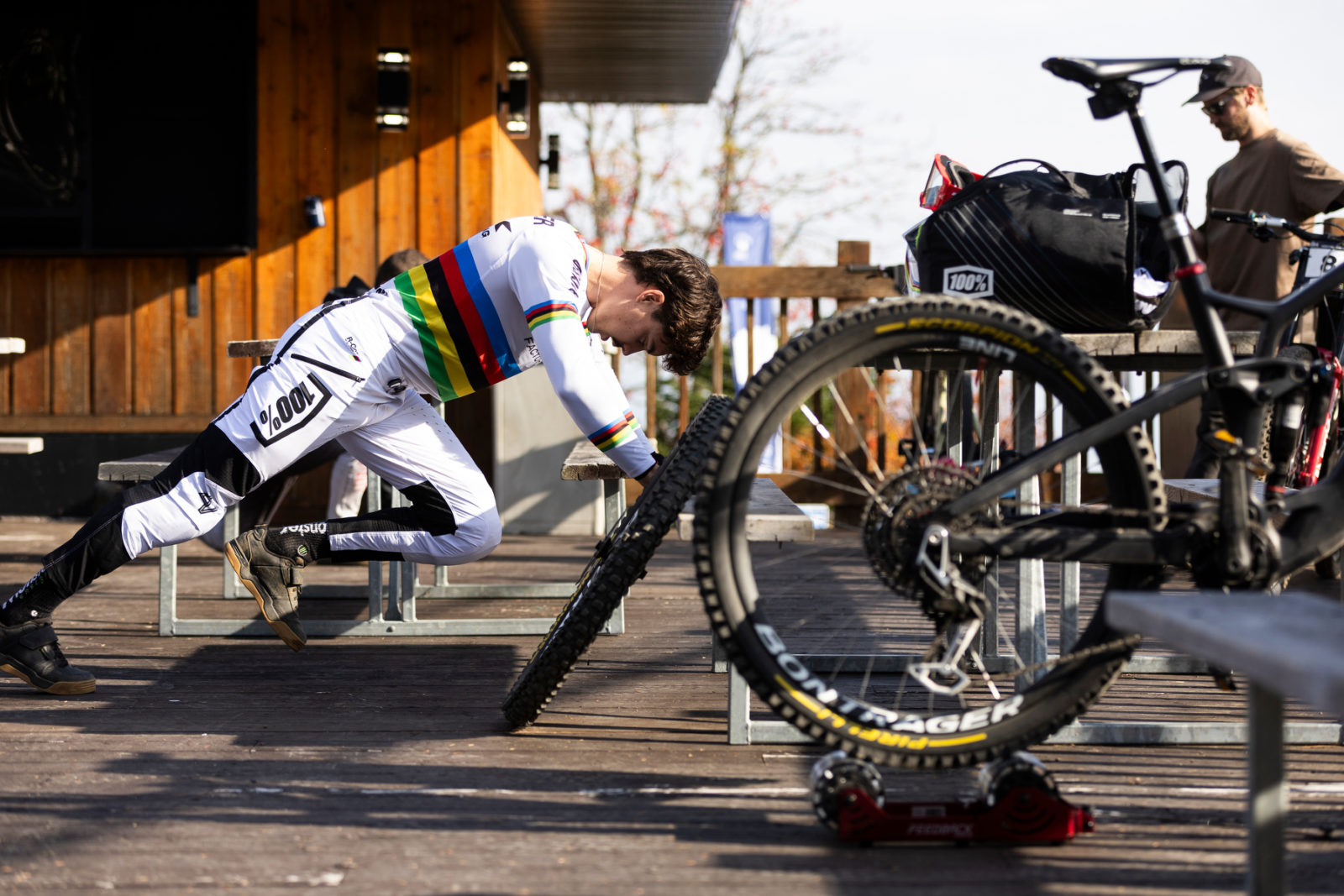 Unfortunately, the weekend didn’t go as planned for the TFR DH boys. Loris Vergier rode in the rainbow stripes as World Champion and finished 13th, while Reece Wilson was 20th. Bodhi Kuhn missed out on finals qualification for the first time during his debut Elite season, not including the races he missed due to injury. But Kuhn’s disappointing finish only emphasized what a breakthrough season it has been, and Vergier and Wilson have plenty of positives to take away from the way they closed the season — Vergier with a World Championship, and Wilson with triumphant return to the podium.