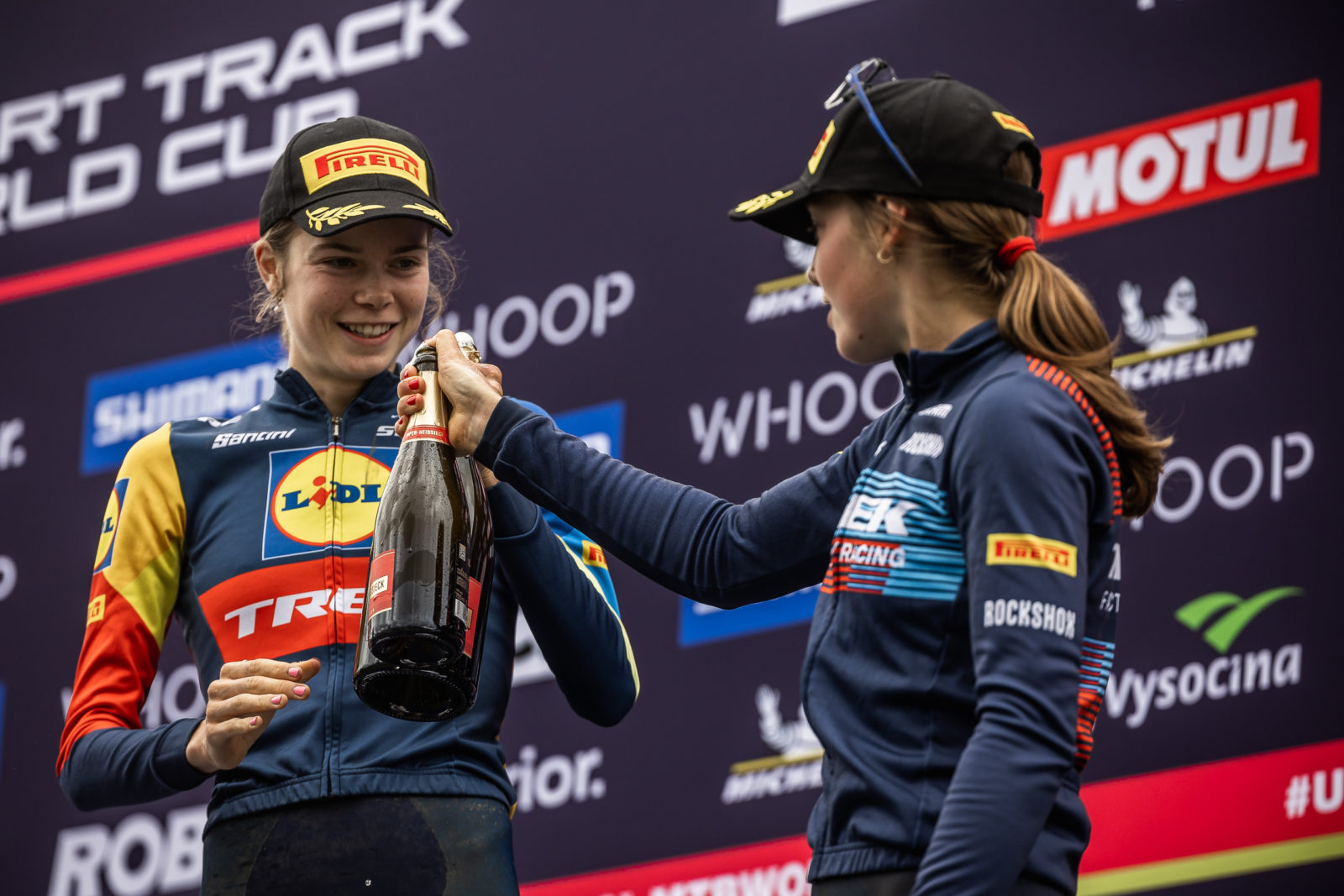 Isabella Holmgren and Riley Amos can both claim a perfect XC MTB World Cup racing season so far.