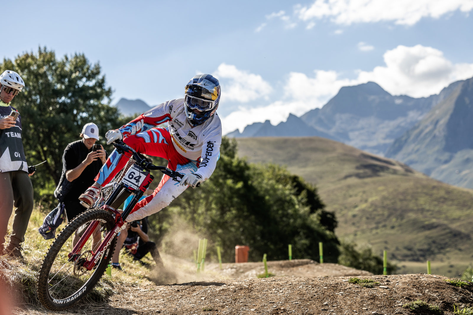 Downhill racing is one of the most unpredictable sports in the world, and it bit the TFR DH team at times. Reece Wilson was primed for a big year, but a preseason injury held him out of competition for most of the season. Bodhi Kuhn, too, was in the mix for the top of the men’s junior overall podium after winning in Val di Sole, but injuries forced him to miss Loudenvielle, Les Gets and Mont-Sainte-Anne.