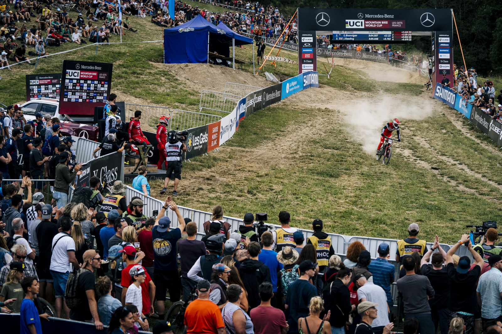 After the high elevation madness of Andorra, the team was off to beautiful Les Gets, France for the second double round of the World Cup. The course in France presented a different style, with a more open vibe to start off the racing before diving into the woods. The weekend would end of seeing Kade Edwards not qualifying for finals, and Reece Wilson finishing up in a solid 22nd place finish.