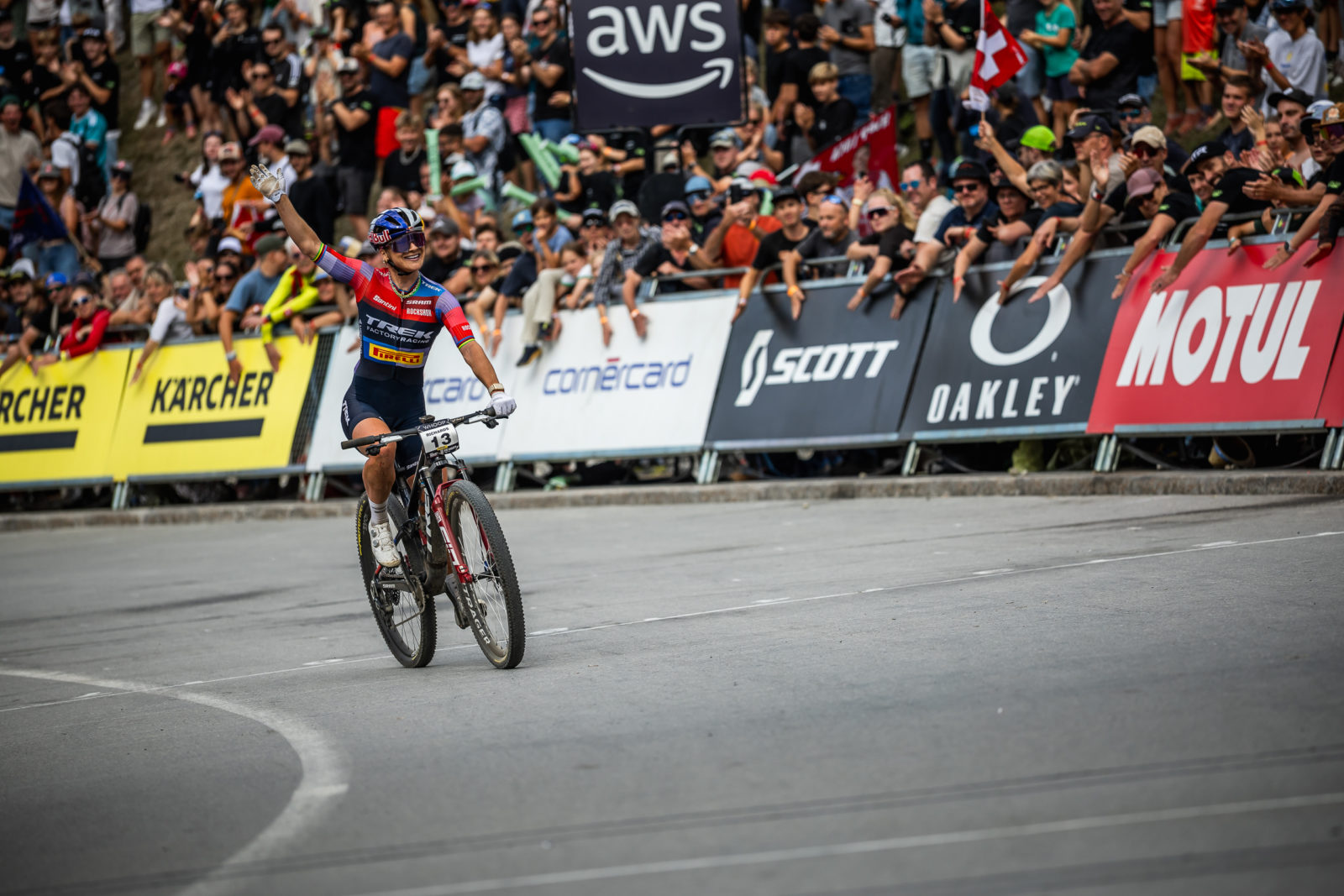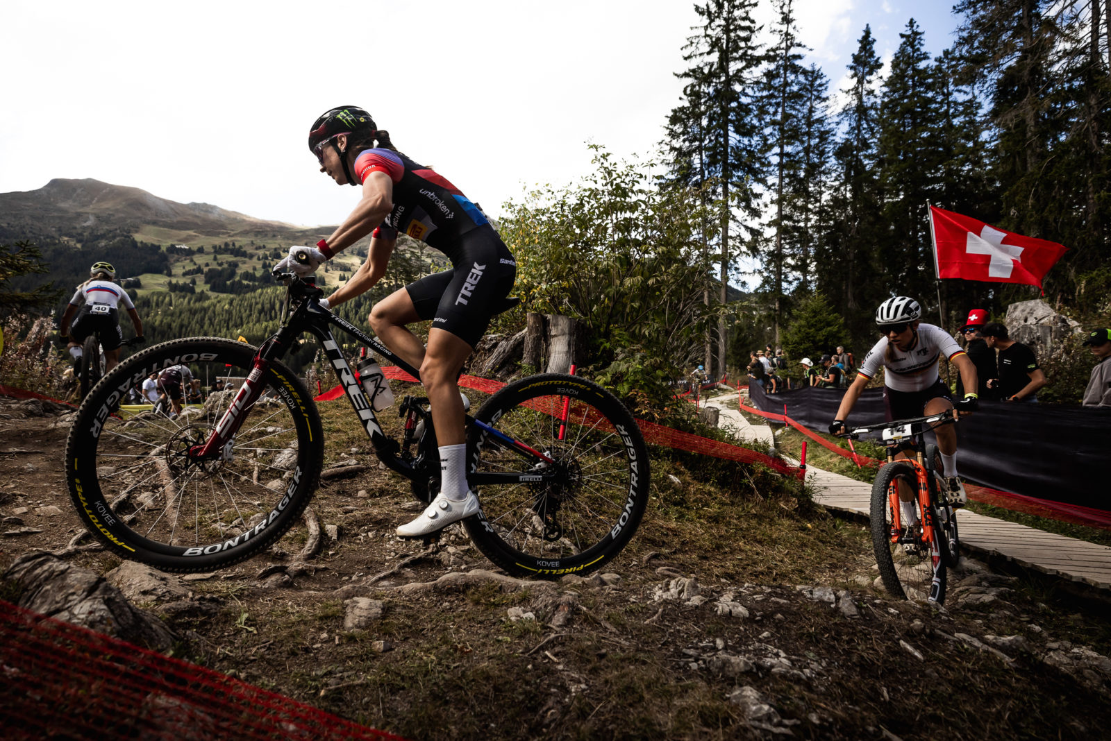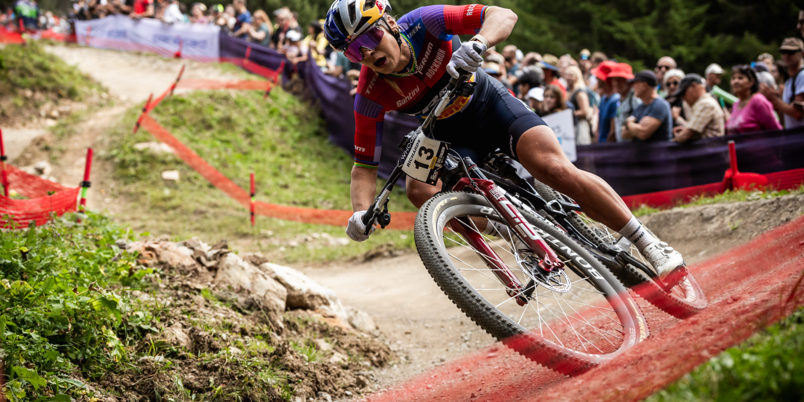 In XC racing, Evie Richards was spectacular again. A tough recovery from Covid after European Championships hindered her ability to perform at the World Cup round in Les Gets. She started to look like her old self again at World Championships, where she just missed a podium bid in short track due to a late puncture. Then in Lenzerheide, she looked back at full power. Richards took second in XCC racing to remain the overall World Cup leader, and then on Sunday, was making a potential winning charge before bad luck struck again: Another heartbreaking puncture.