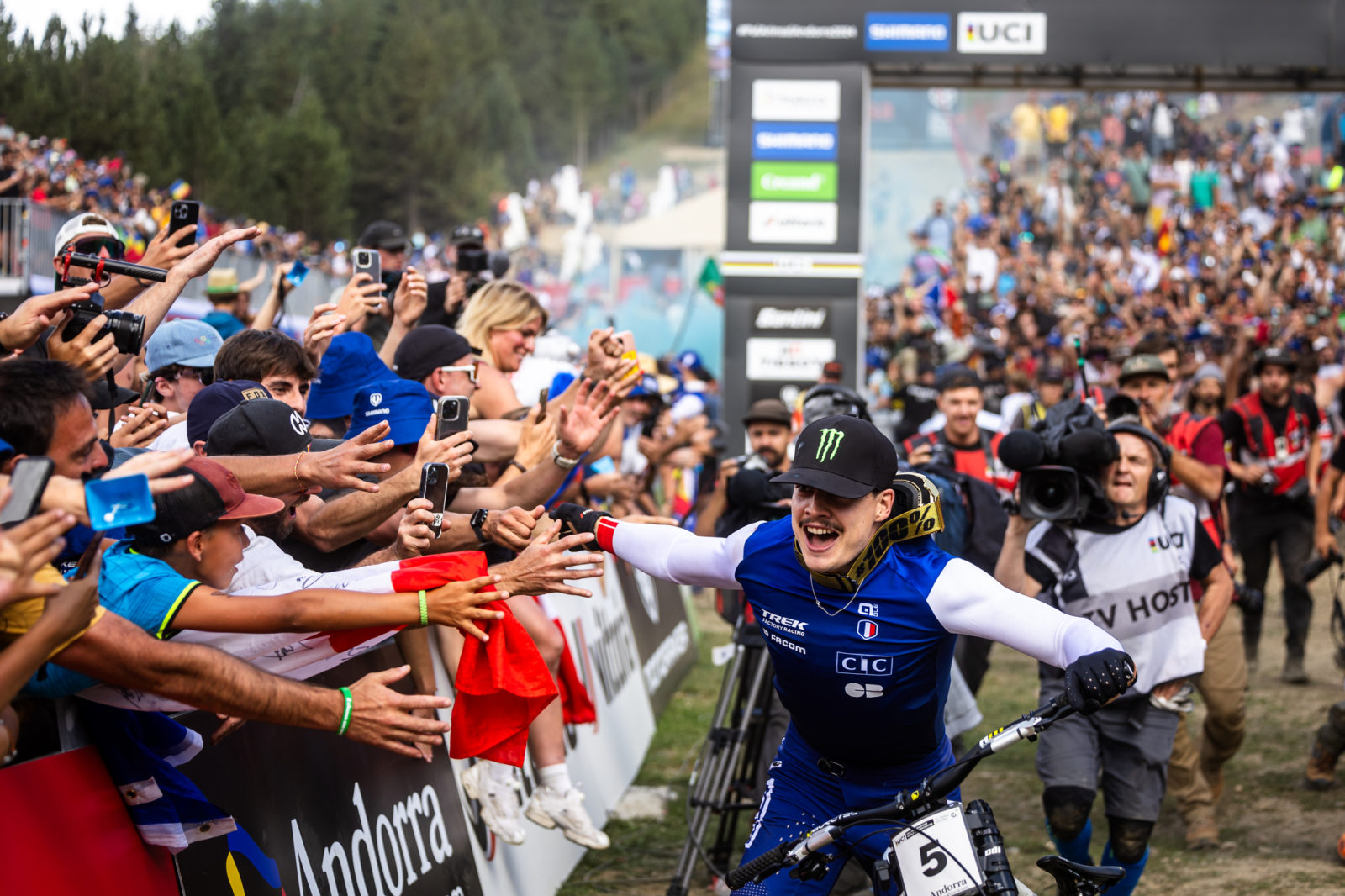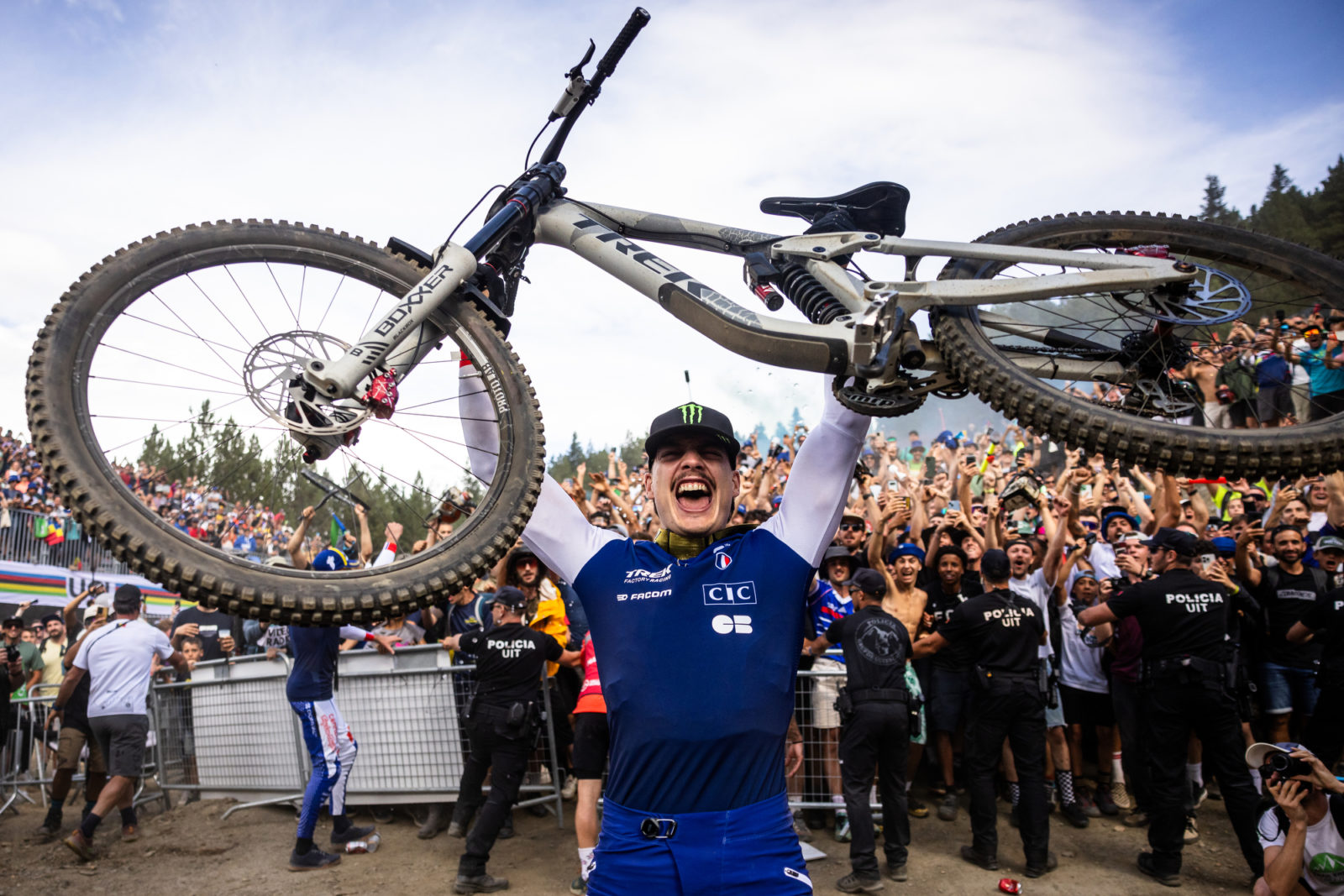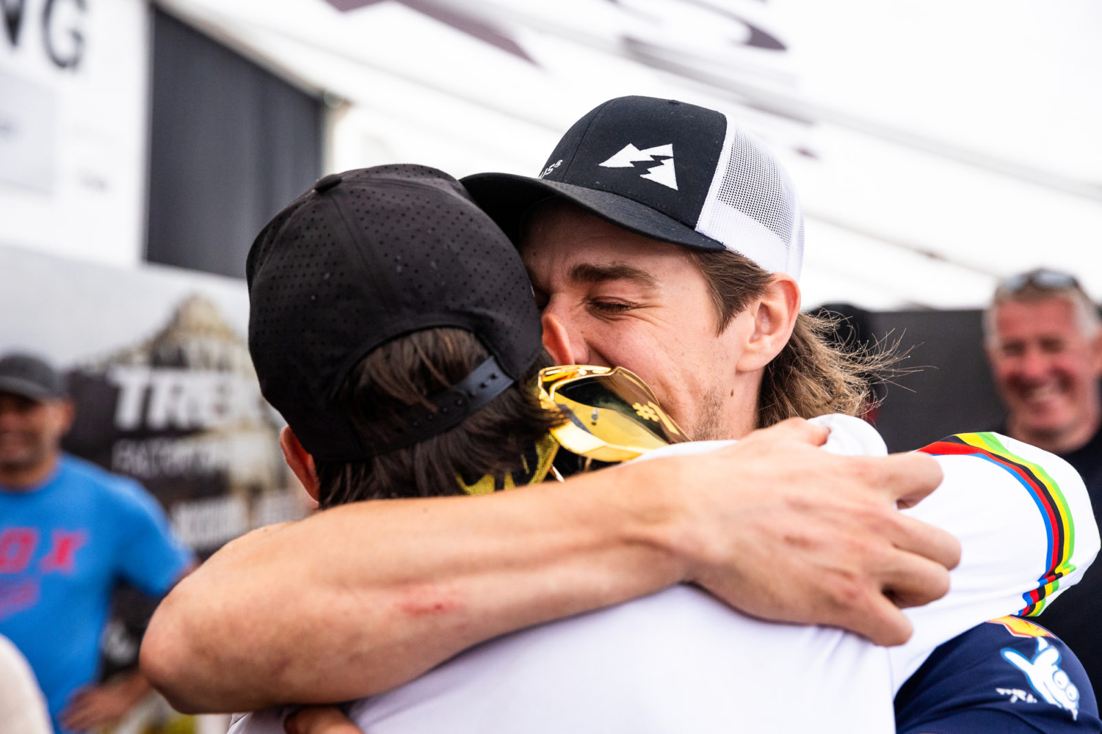 Vergier won the World Championship in a thrilling Elite Men’s battle. Just 0.148 seconds separated him from second place Benoit Coulanges. If he had been 0.17 seconds slower, he would have been off the podium entirely. But in downhill racing, millimeters make all the difference, and Vergier was millimeter perfect on one of the most difficult tracks in the world.