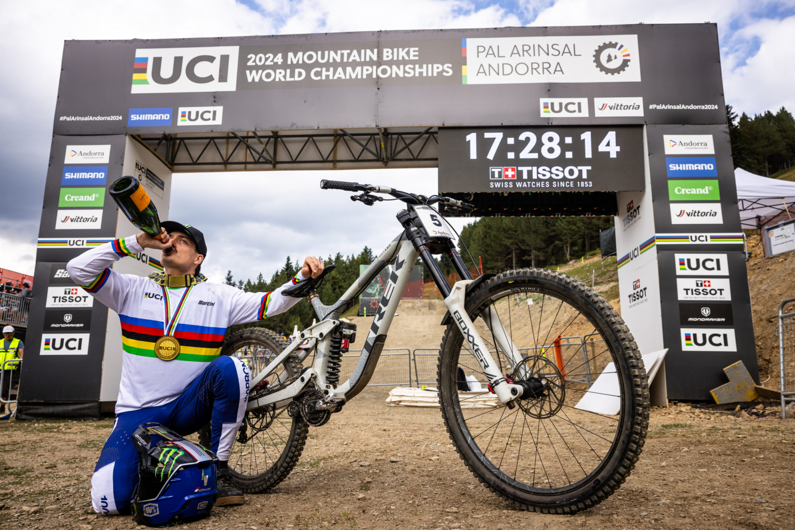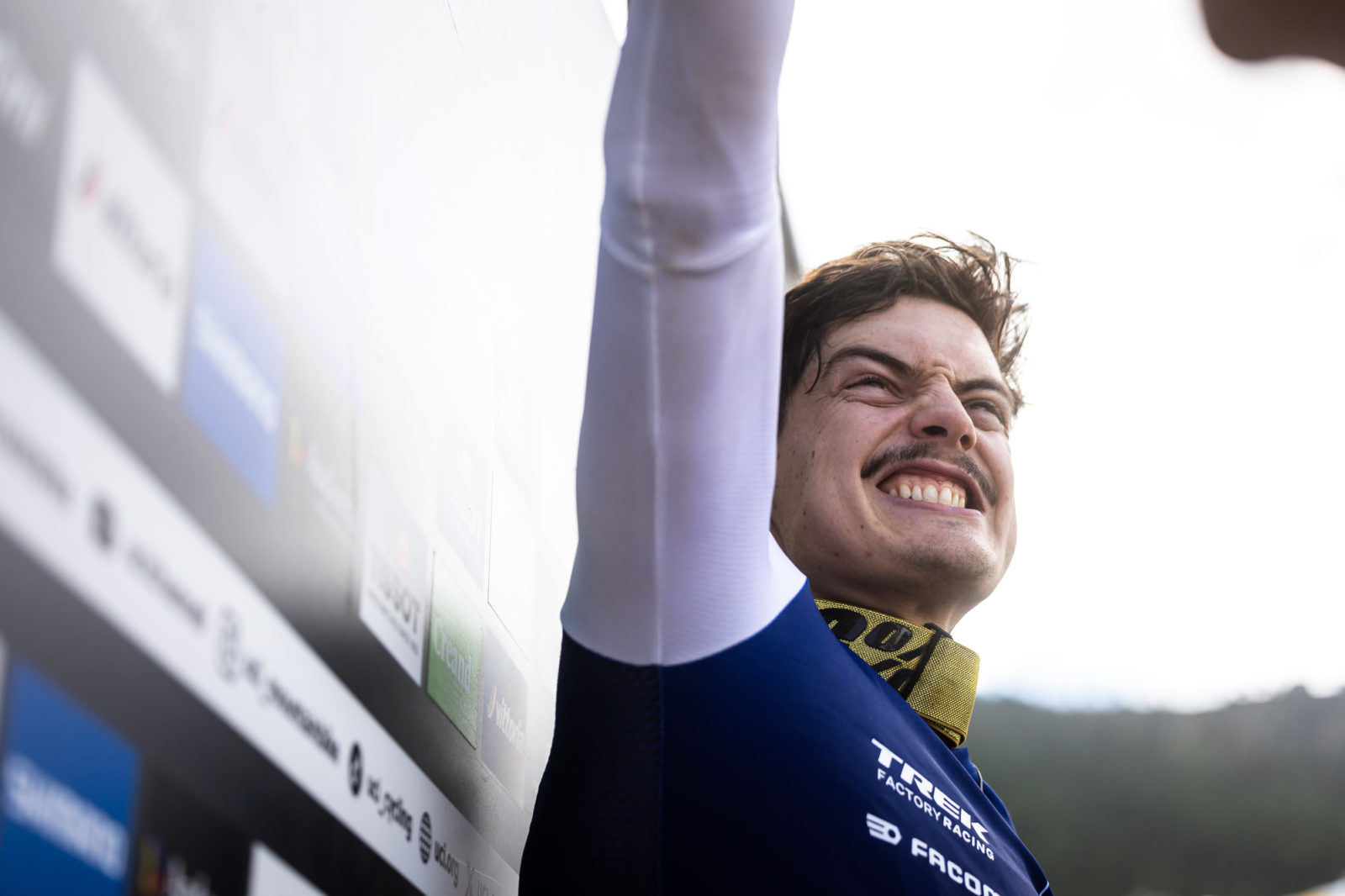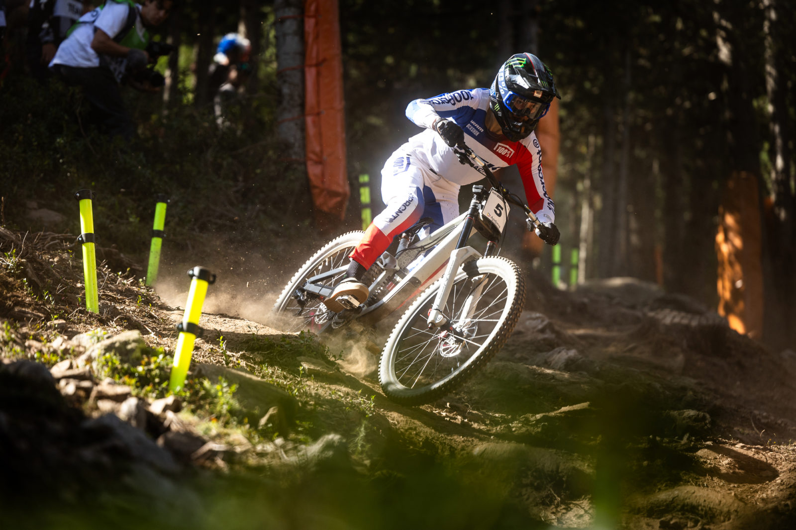 Vergier won the World Championship in a thrilling Elite Men’s battle. Just 0.148 seconds separated him from second place Benoit Coulanges. If he had been 0.17 seconds slower, he would have been off the podium entirely. But in downhill racing, millimeters make all the difference, and Vergier was millimeter perfect on one of the most difficult tracks in the world.