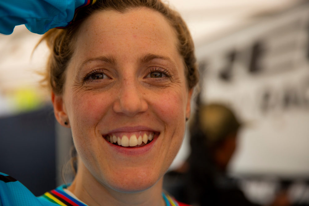 Rachel came into the race hungry for the win one week after her legendary chainless run at Fort William resulted in a third place, but she didn’t qualify well, falling hard in a rut that had been getting deeper all weekend. Her bike entangled a pole and it cost her a lot of time leaving her in 16th place.