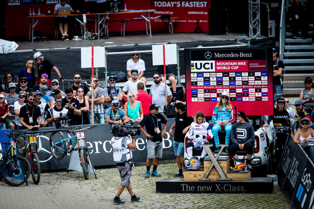 Myriam Nicole leads the overall World Cup DH standings by 10 points – 610 to Rachel’s 600 – and all to play for.