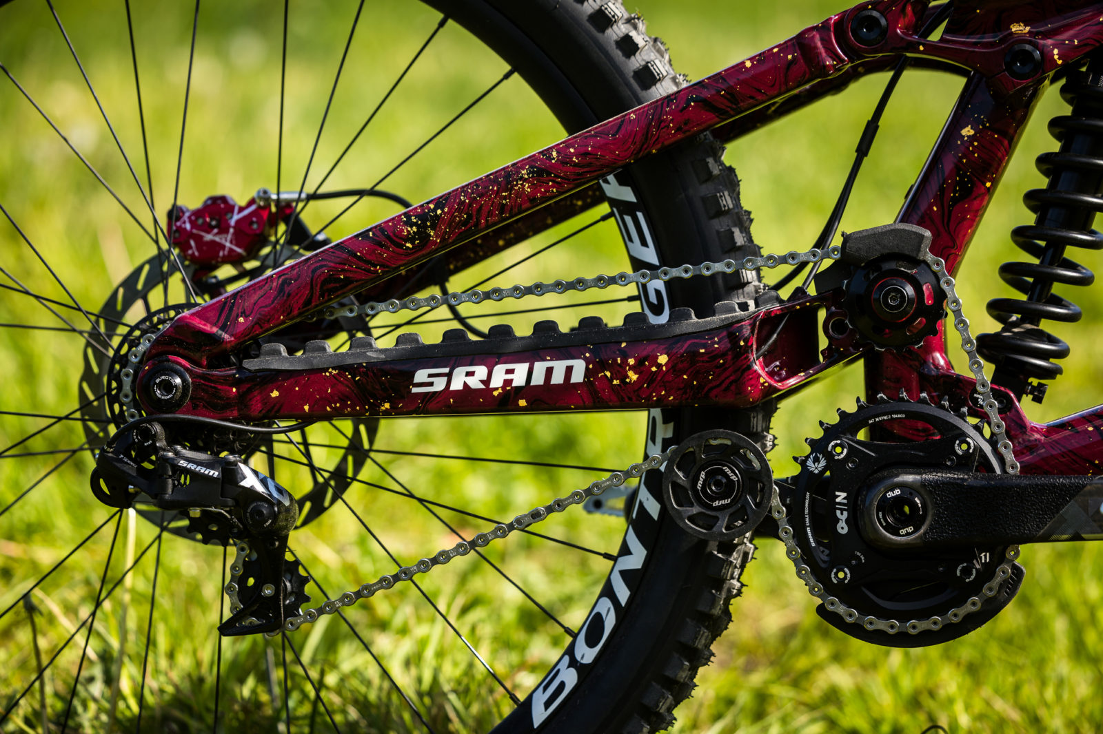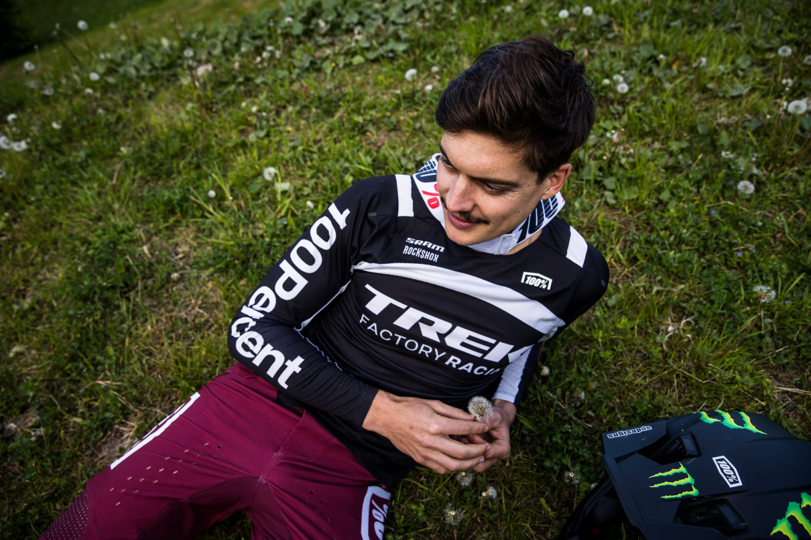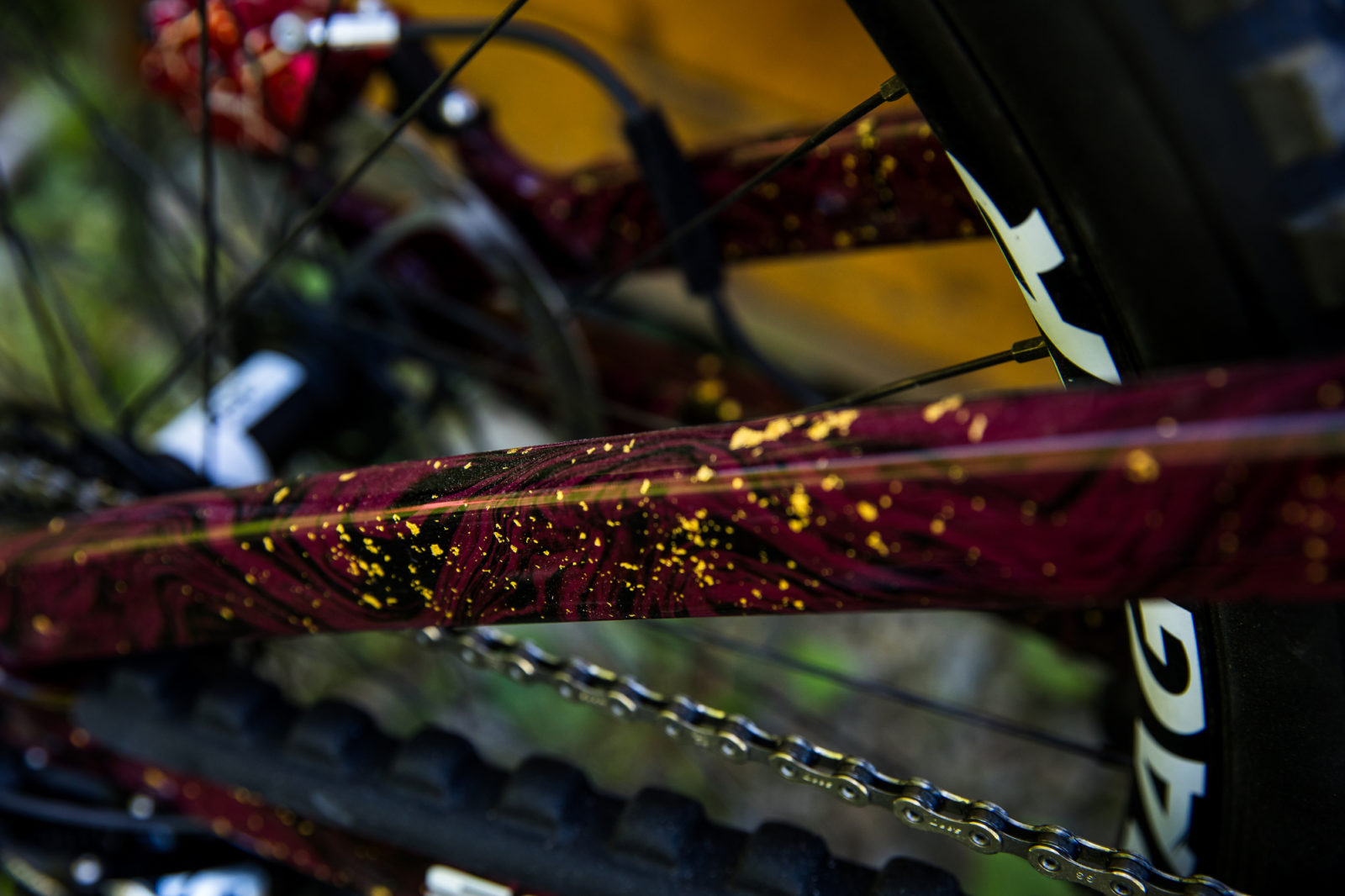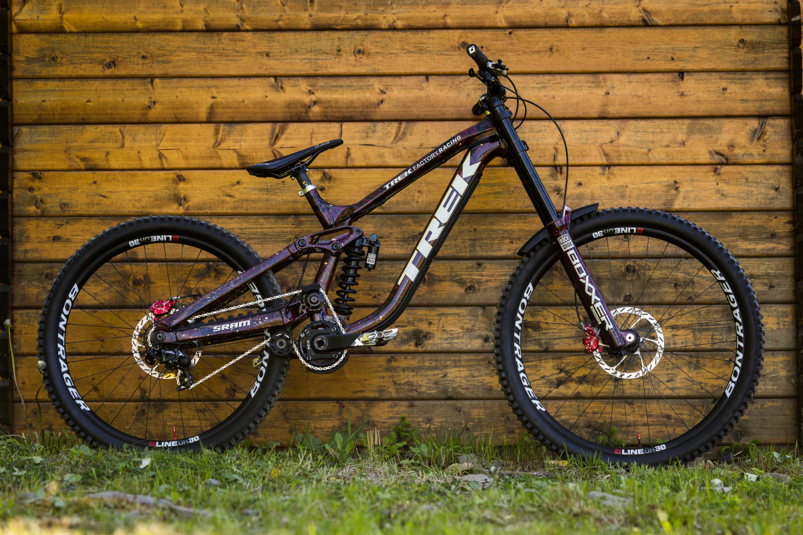 We often say that the Trek Factory Racing Downhill squad is a class act. The riders are taking that literally for a debut World Cup track in Bielsko-Biala, Poland. They’ll race on custom “Merlot” Trek Sessions, flecked with a real gold flakes, and including a matching RockShox BoXXer fork. Custom 100% kits pair beautifully, like a nice slice of aged Brie.