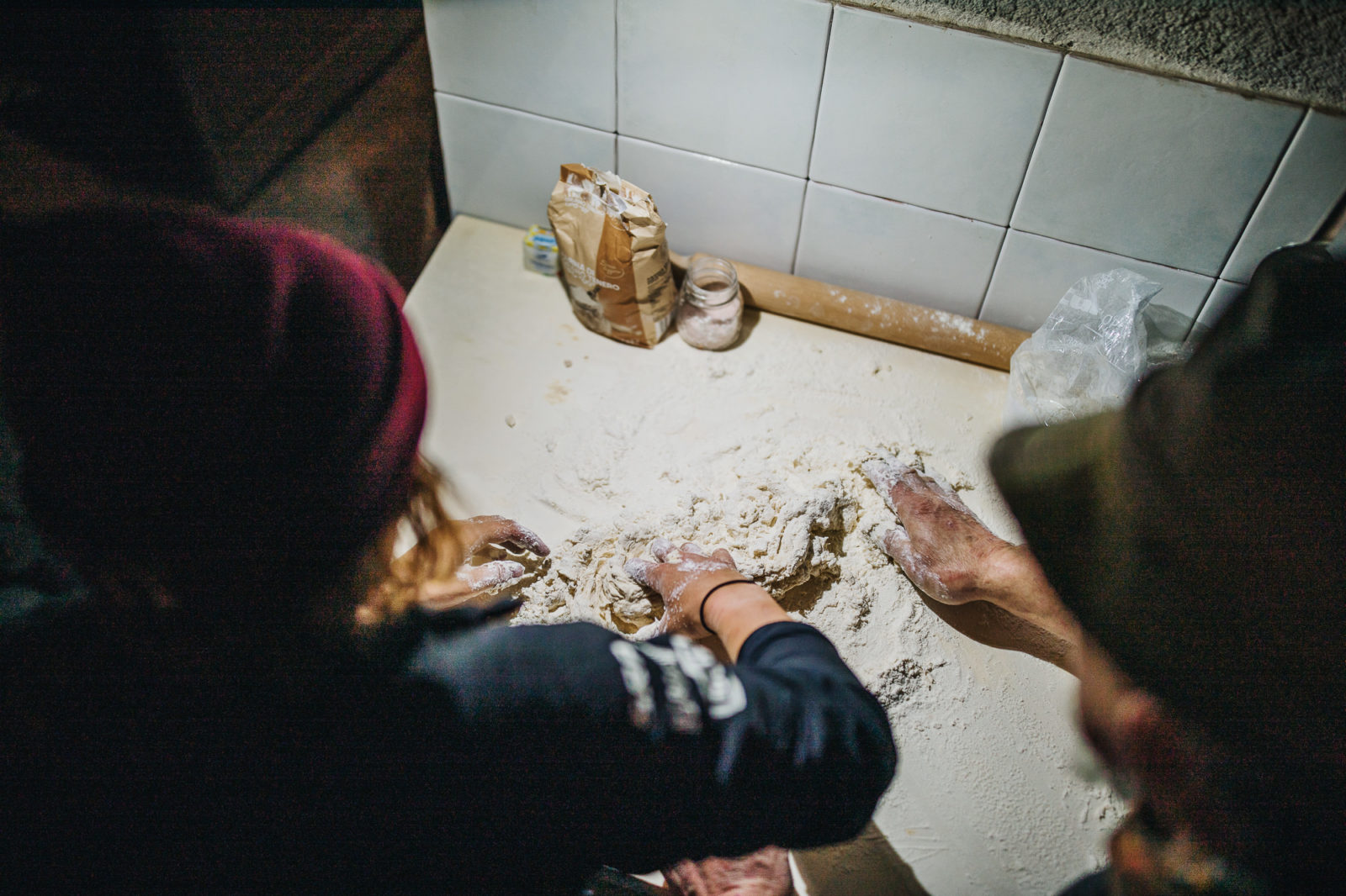 Together they learned to make crust, roll it out, and dress it with the traditional toppings of tomato sauce and fresh mozzarella.