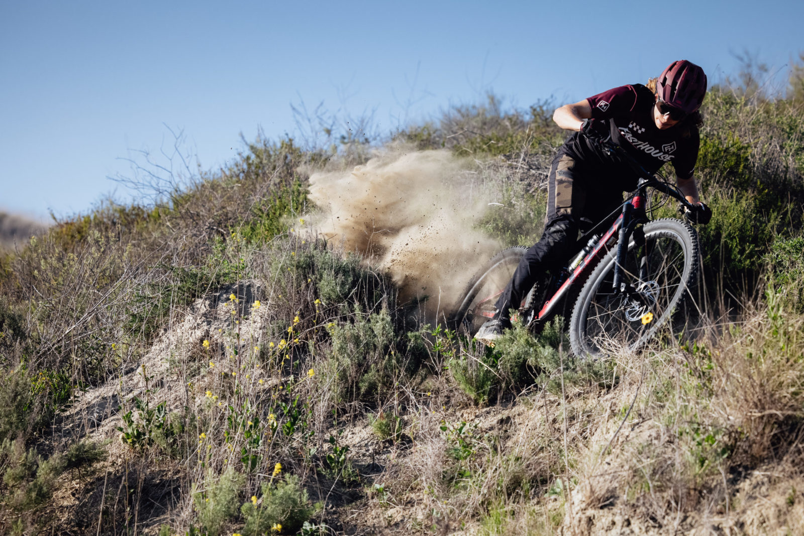 Our first test session was at Rocky Peak. It’s a pretty good testing spot down here. It’s a good variety of rock and shatter and everything like that. So I came out with just the stock suspension settings, and each lap, I would basically just say if it gave too much response, either the shock or the fork, and he’d be like, ‘Oh let’s try this.’ So it was just cool to see the progress in the suspension settings, and each time it got better and better, and we even sometimes got a little ahead of ourselves and had to set it back a little bit.