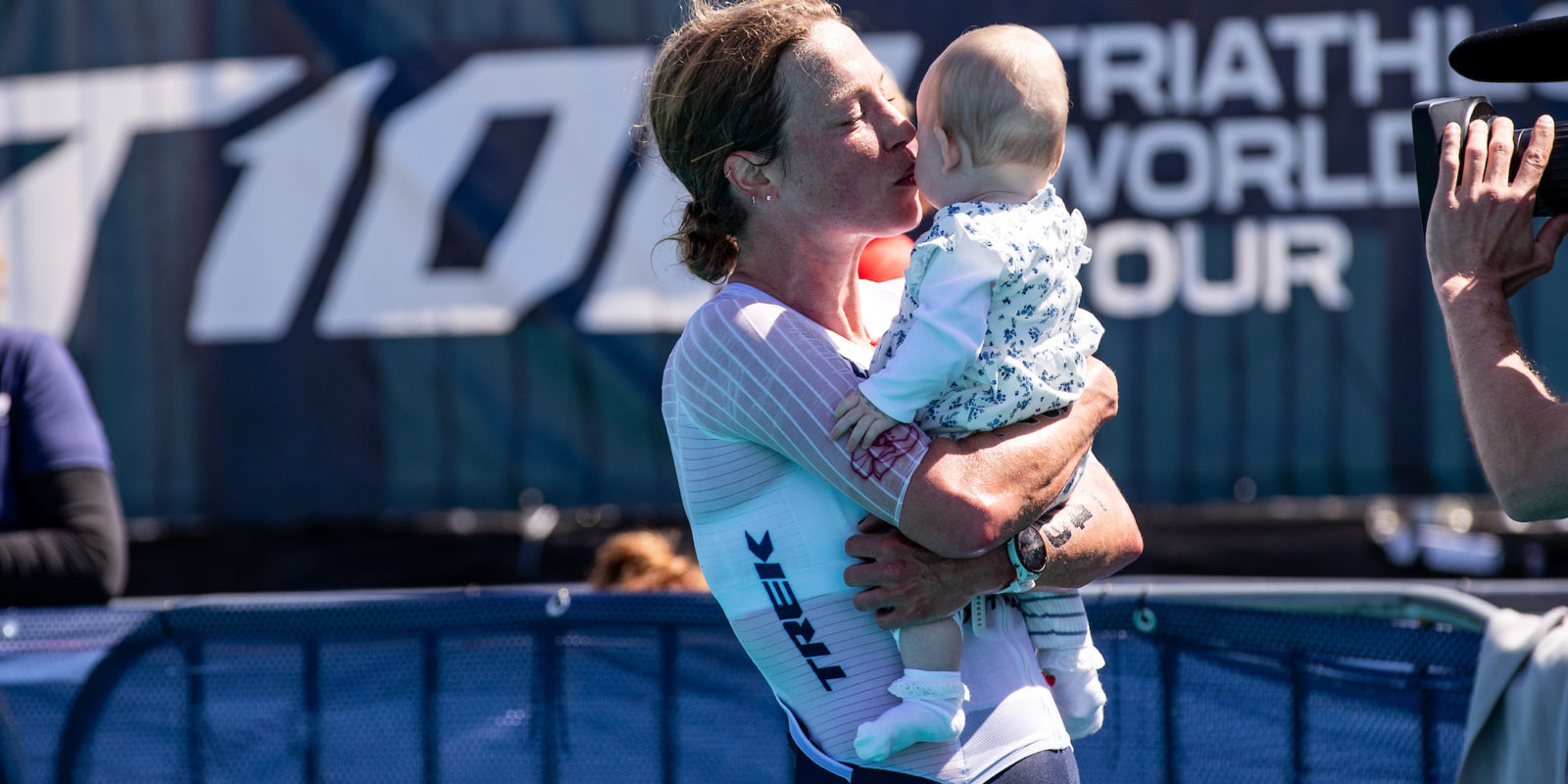 Her performance exceeded even her expectations. Not only could she claim a strong result, but she felt free as a racer in a way she hasn’t in a long time. Her husband Sean was posted at the turnaround of the running lap in San Francisco, holding their daughter Poppy. Every lap, Lawrence shook Poppy’s leg for an energy boost and reminder that her life contains so much more than racing now.