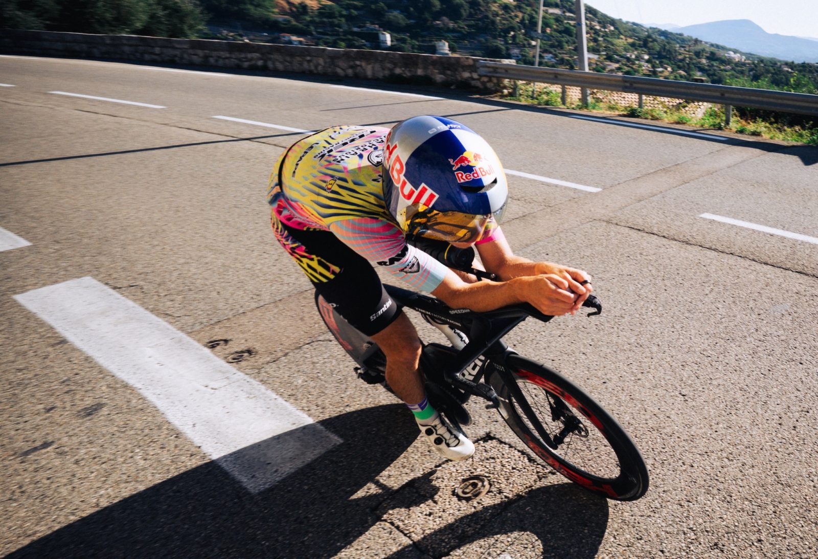Matthew Marquardt charging on his bike after suffering a debilitating cramp in Nice. | Photo: Slow Twitch