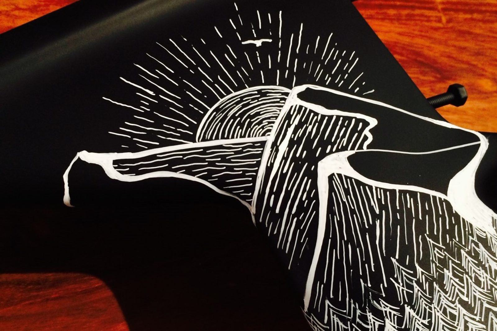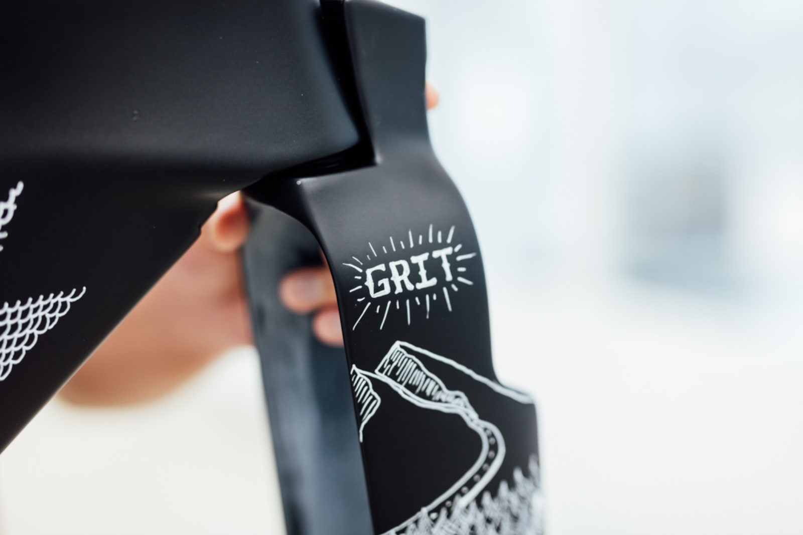 “This was the bike Linsey would ride to complete her comeback after a challenging year of injuries and setbacks. I explored the use of chalk markers drawn directly onto a matte black bike to provide the visual support for her comeback,” Brian described. “We included scenery of the Pacific Northwest, passion for fishing, the love of dogs and a nod to some of their history in Montana with drawings of a cowboy hat. Being able to design a bike 100% analog is pretty rare and the right opportunity doesn’t present itself often. This is still one of my favorite bikes I’ve been able to work on to-date.”