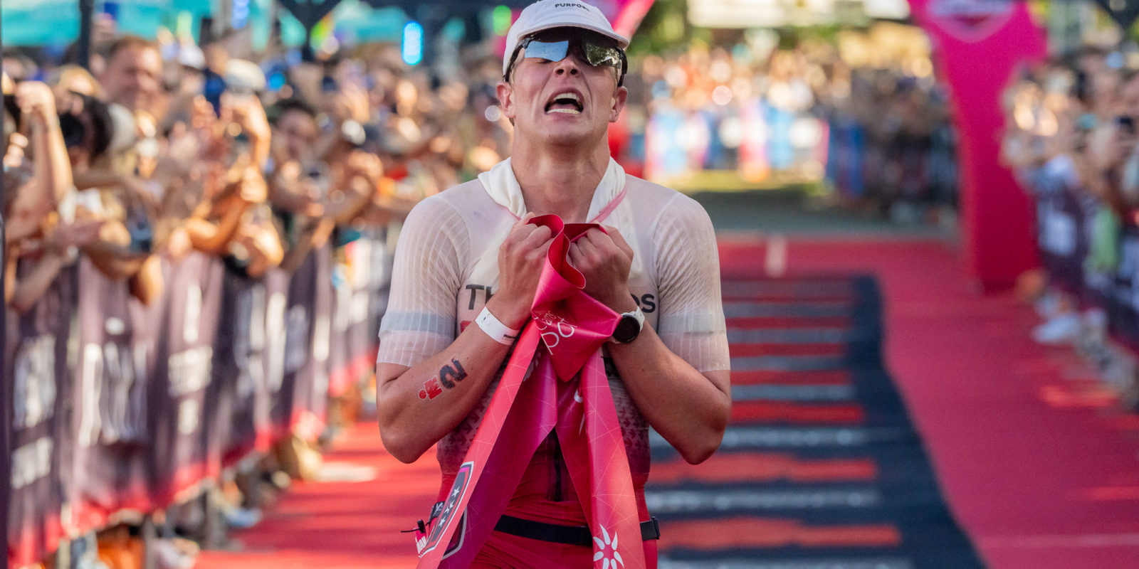 Matthew Marquardt greeting the crowd for his first career Ironman win.