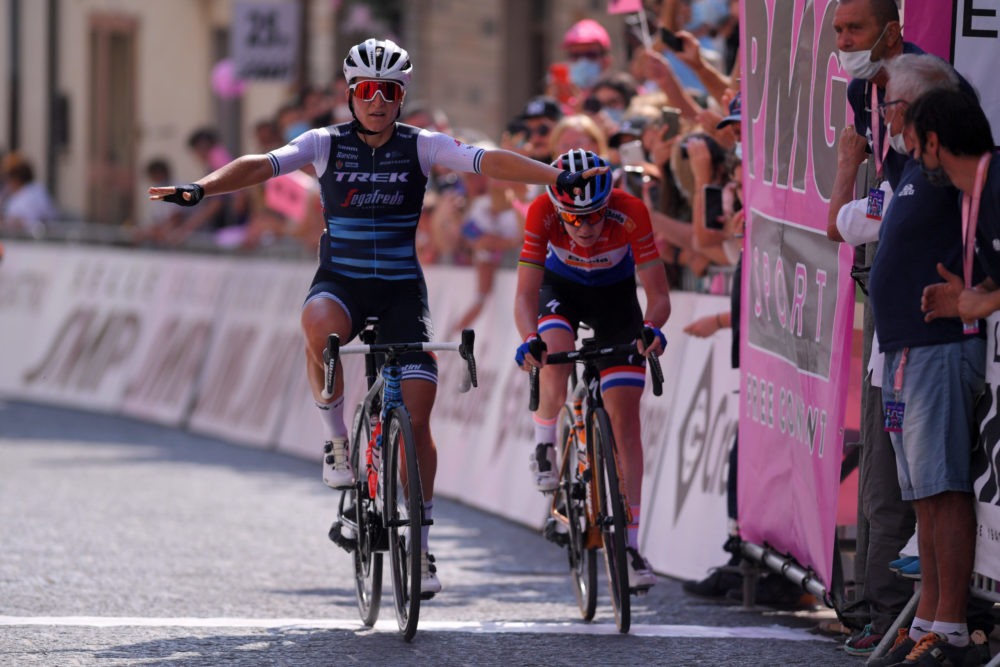 Elisa Longo Borghini outkicks Anna Van Der Breggen to win Stage 8 of the Giro d'Italia Internazionale Femminile.