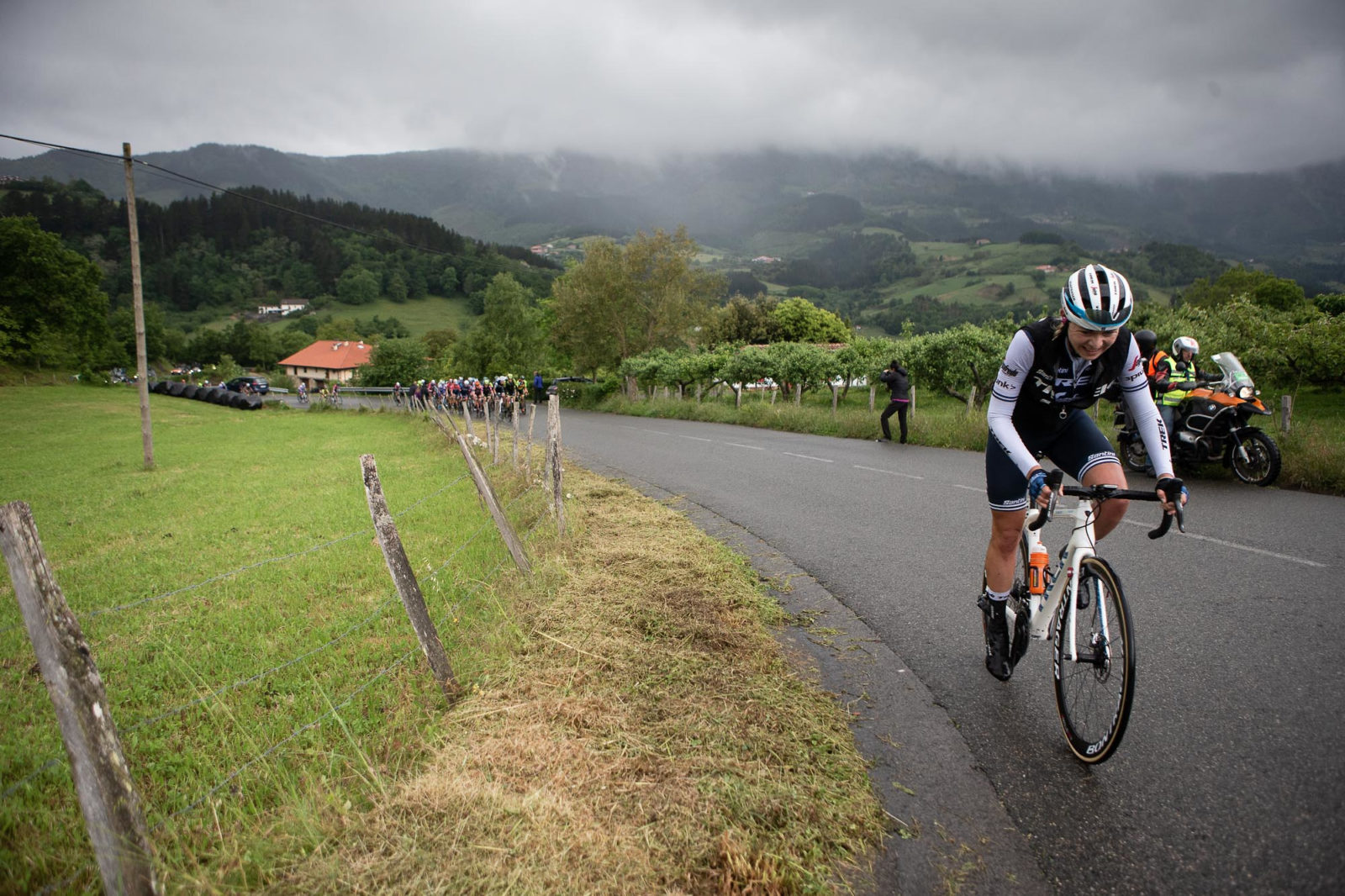 Longo Borghini crested the final climb alone and used her descending skills to increase her lead over the ensuing downhill kilometers. As she reached the last flat eight-kilometer run-in, her gap had fallen, and it was touch and go if she would hold off the chase behind.