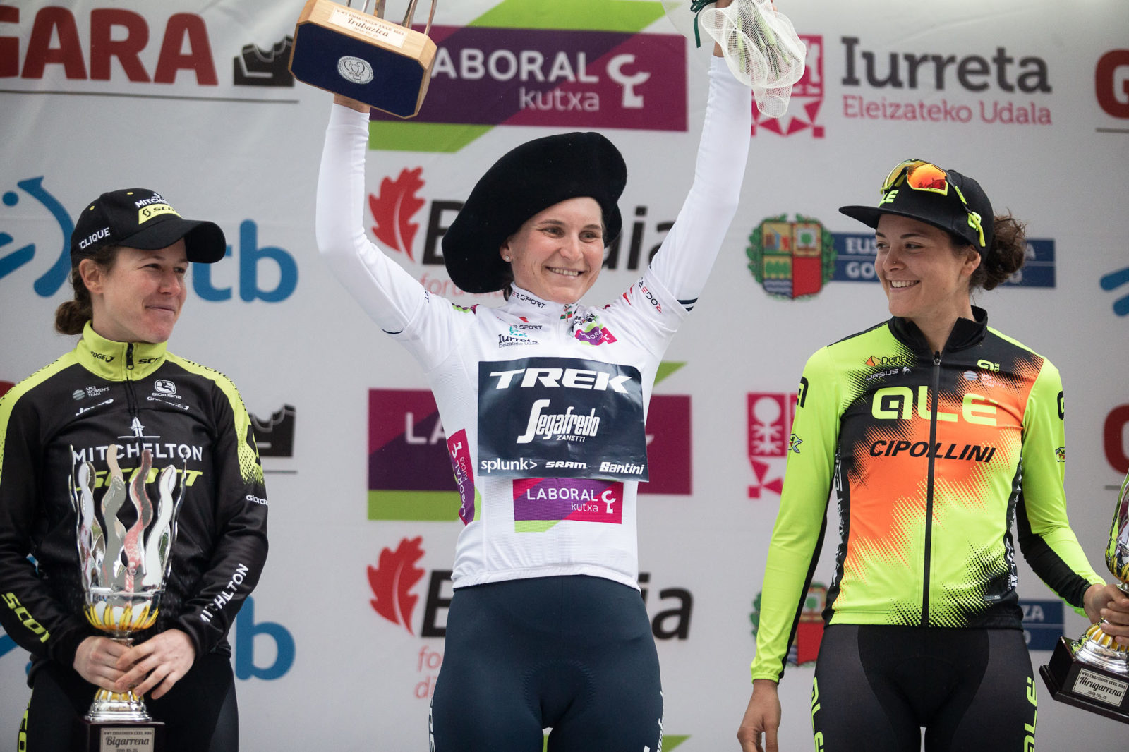 Elisa Longo Borghini celebrates after learning she won the overall GC.