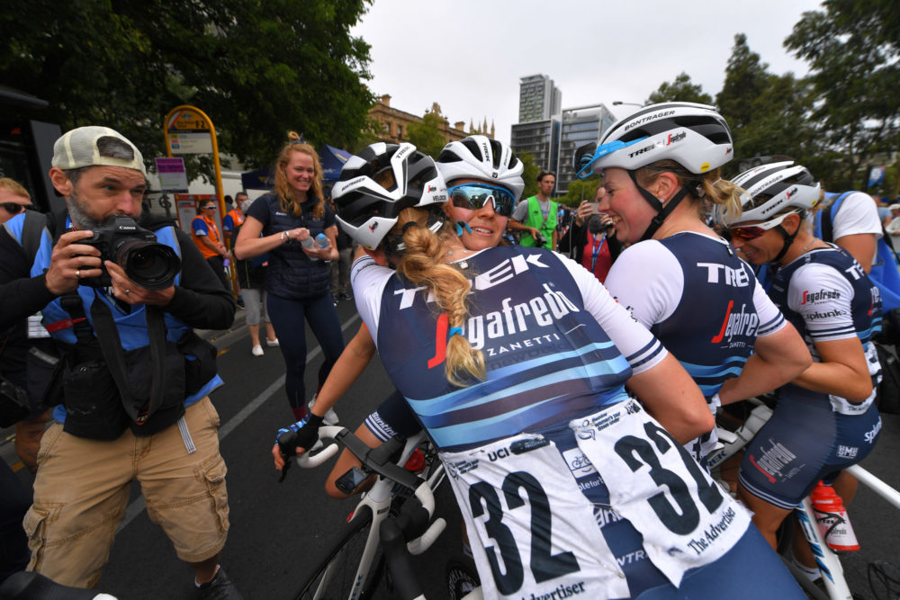 The 26-year-old reigning US national road champion stole the show on stage three when she powered to victory in Stirling propelling herself to the top of the general classification. Winder, racing her second year in Trek-Segafredo colors, started the final stage, a fast and furious 42.5km criterium-style affair in Adelaide, with all but seven seconds advantage over Liane Lippert (Team Sunweb) and Amanda Spratt (Mitchelton-Scott) but Trek-Segafredo rode strongly as a team and successfully defended the Ochre leader’s jersey.