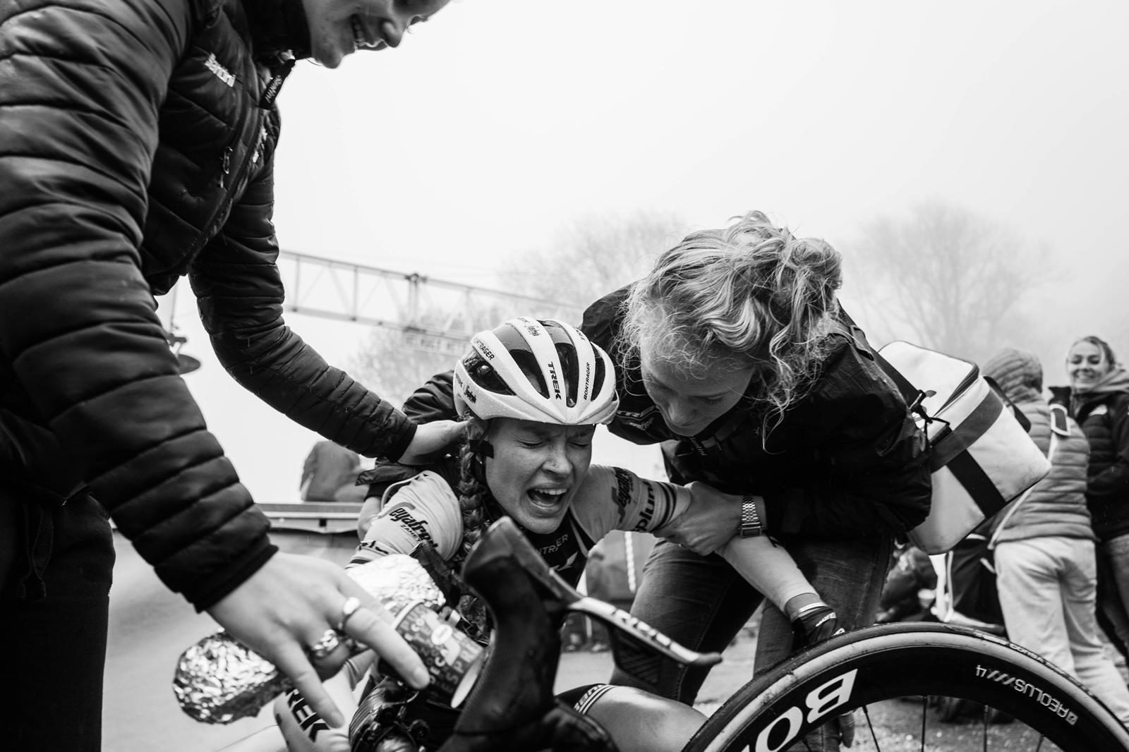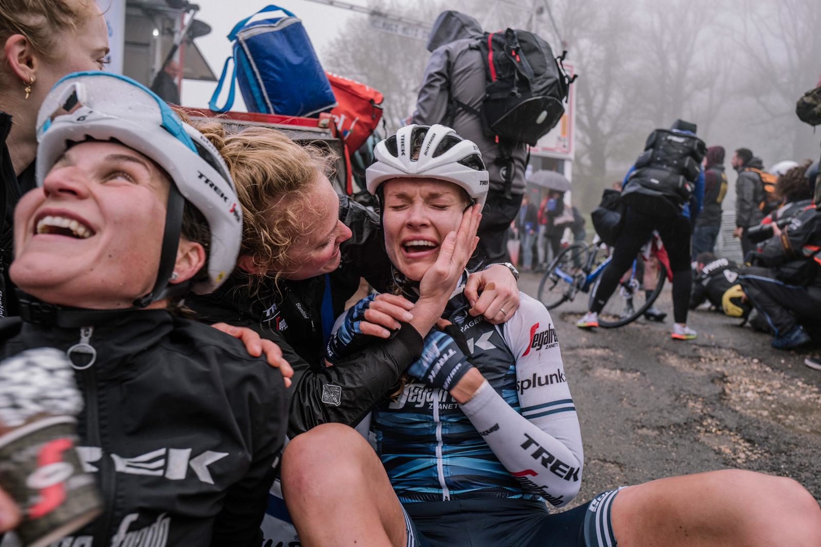 “Geerike (Schreurs) our awesome soigneur basically caught me and help me while I pulled it together. Such a special day! Lauretta (Hanson) and Anna (Plichta) were incredible in the first part of the race, following all the attacks and even making some of their own. Audrey was captain and did a great job of taking care of Elisa and I and also motivating us all in the radio all race long!”