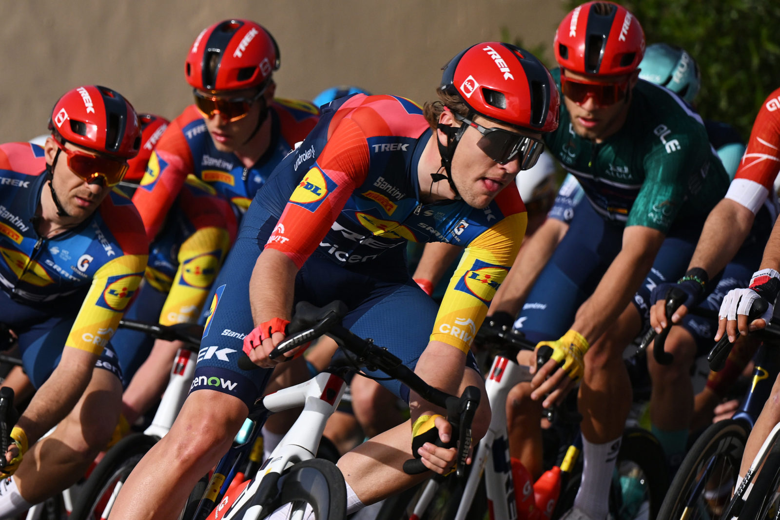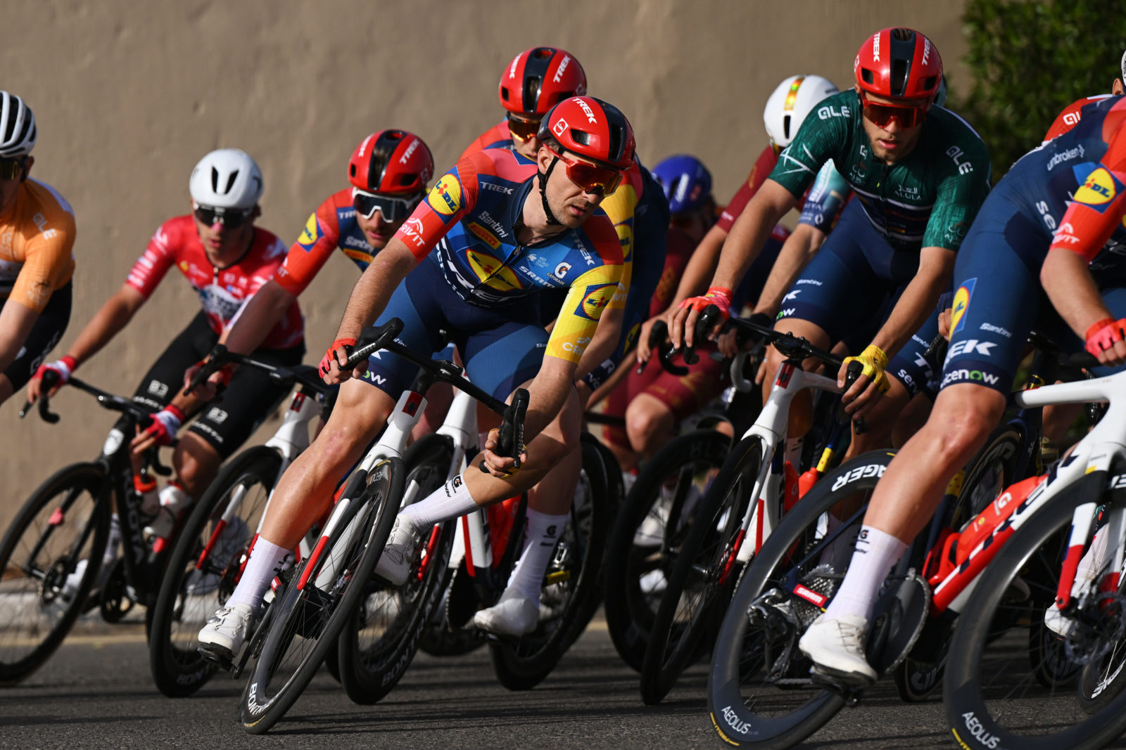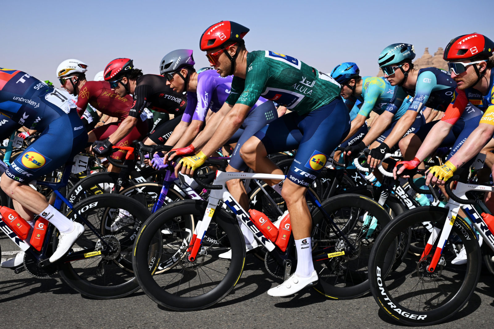 ALMANSHIYAH, SAUDI ARABIA - JANUARY 28: Otto Vergaerde of Belgium and Team Lidl - Trek competes during the 6th AlUla Tour 2026, Stage 2 a 152km stage from AlManshiyah Train Station to AlManshiyah Train Station on January 28, 2026 in AlManshiyah, Saudi Arabia. (Photo by Dario Belingheri/Getty Images)